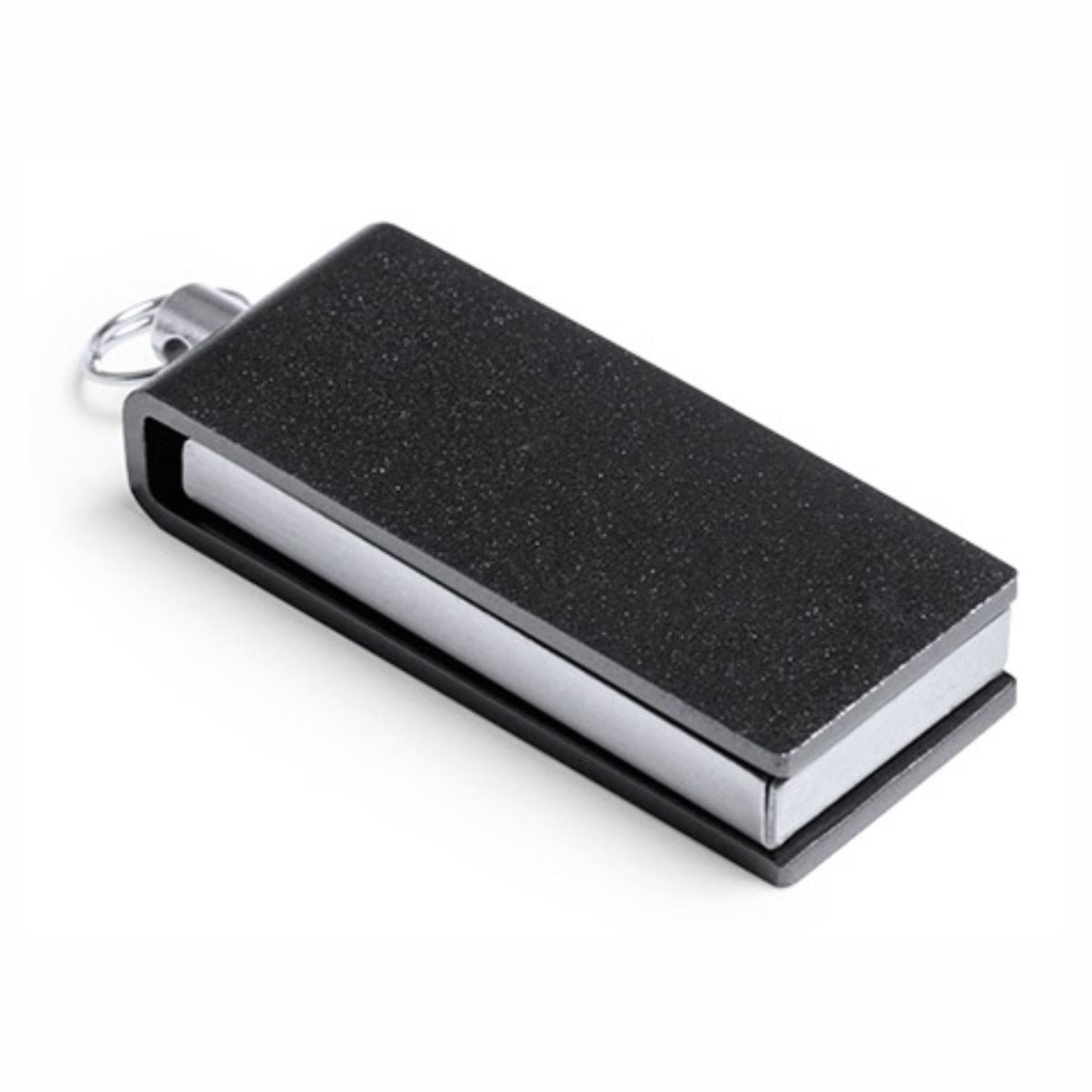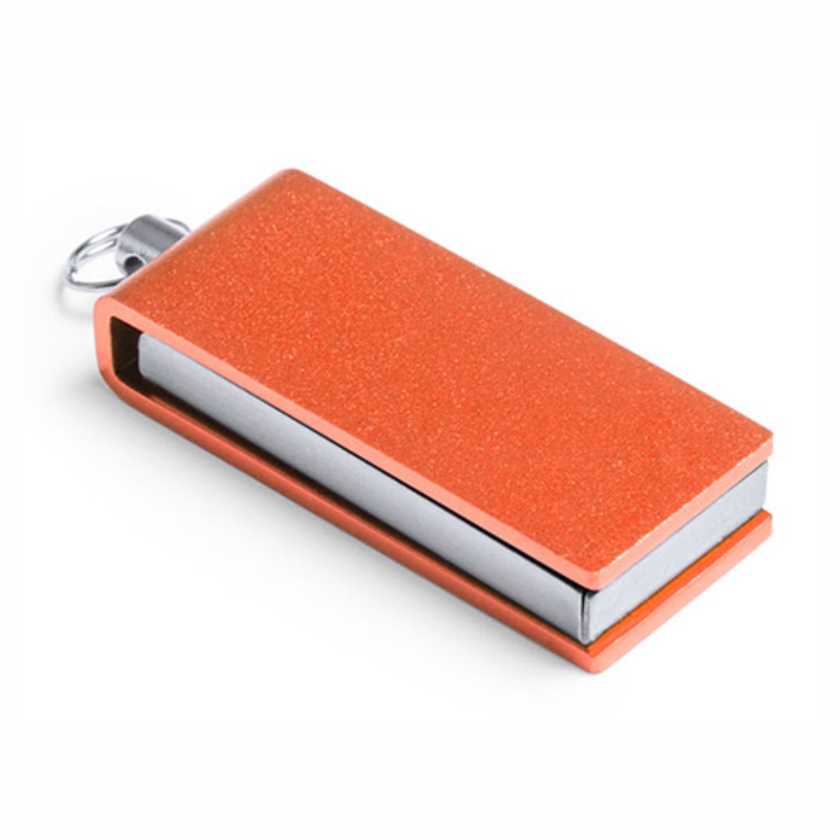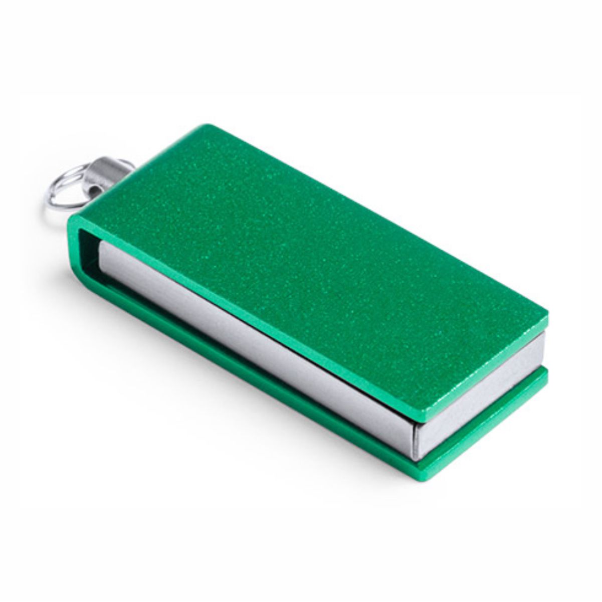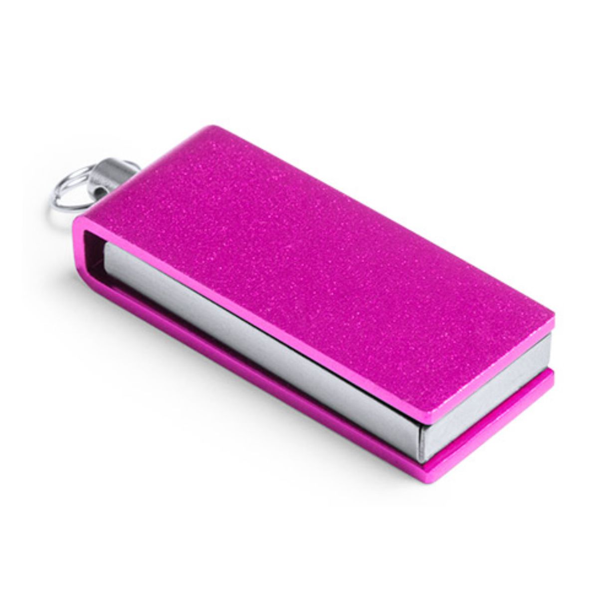 Mini memoria USB Publicitaria de 8GB de capacidad, con mecanismo giratorio y acabado en aluminio brillante.