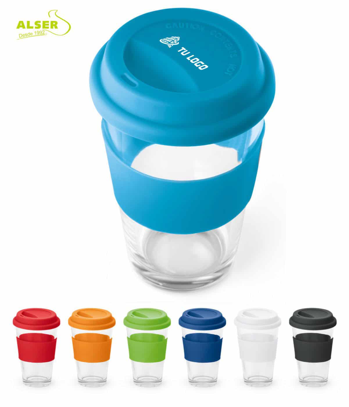 Esta vaso trae tapa y banda de colores, si los compras surtidos, es muy fácil distinguir de quien es cada vaso.